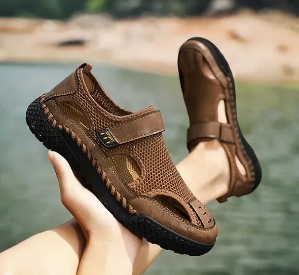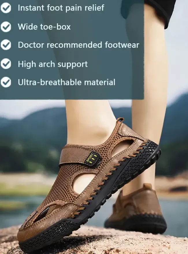 GARB® Men's Genuine Leather Handmade Mesh Breathable Sneakers