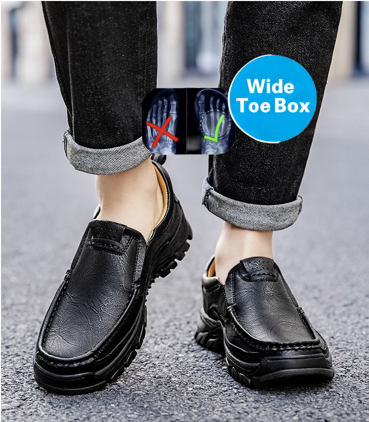 Introducing our men's shoes featuring a wide toe box design, perfect for those with wider or fuller feet. Embracing various foot shapes, these shoes offer ample space for your toes, ensuring maximum comfort with every step. Experience the freedom of movement and style without compromising on comfort.